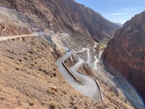 Von Tafraout aus ging es in das enge Tal von Ait Mansour. Anfangs fuhren wir noch gemütlich durch eine herrliche Palmenoase – doch die Idylle