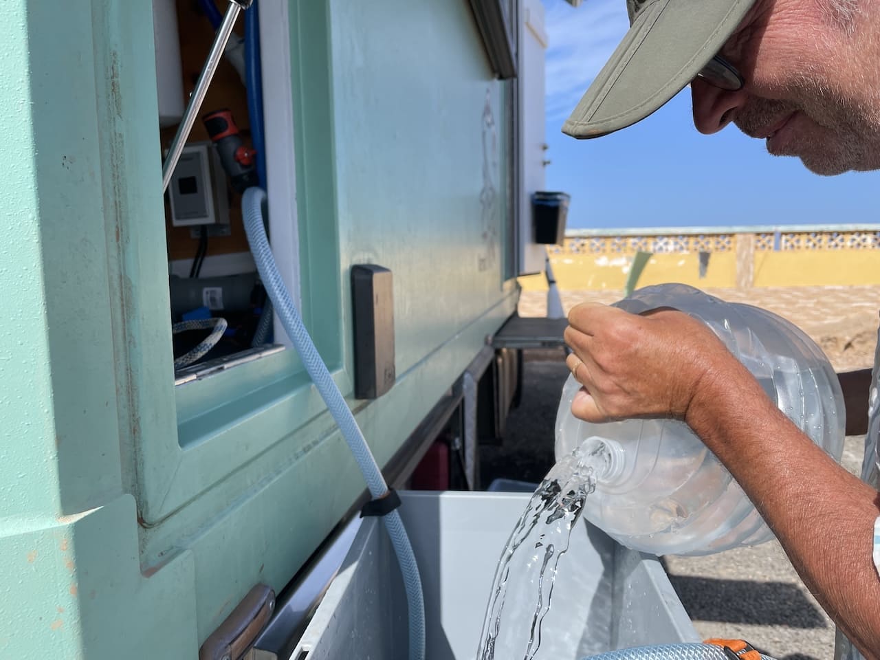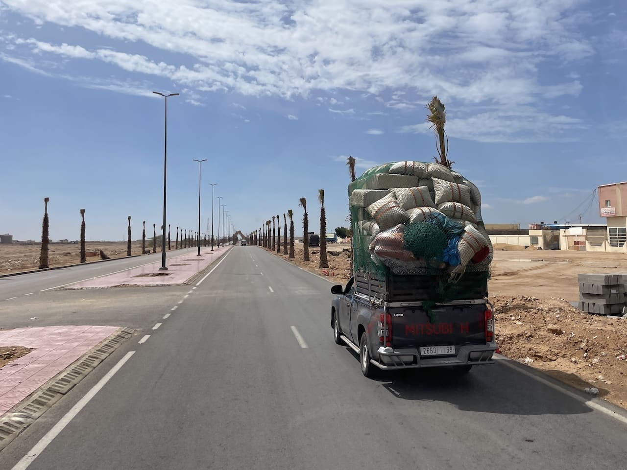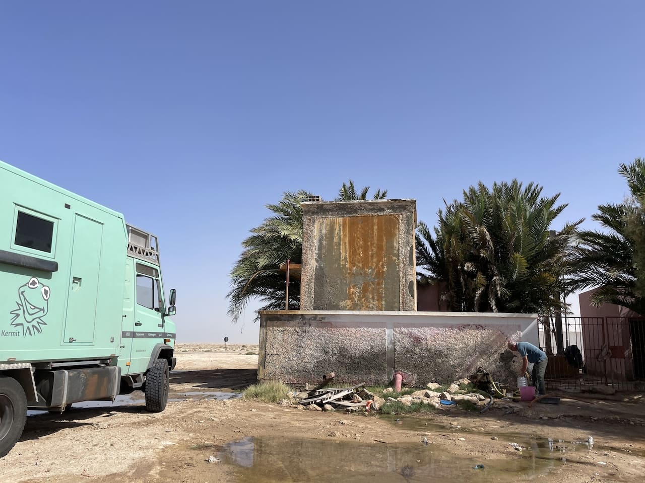 Für uns heißt das jetzt erst mal: Wasser- und Lebensmittelvorräte aufstocken. Wir filtern das Wasser ja bevor es bei uns in den Tank kommt, d.h. der ganze Frischwassertank enthält Trinkwasser. Da sind ca. 300l, also ein beachtlicher Vorrat. Unterwegs haben wir an kleineren Quellen immer mal wieder nachgetankt. Lebensmittel des täglichen Lebens bekommt man eigentlich in jedem Dorf und so sind Gemüsevorräte kein Problem und zudem extrem günstig. Anders sieht es beim Fleisch aus. Da tun wir uns beim Einkauf immer etwas schwer – aber auch das gelingt ab und zu (Ziegenhackfleisch, Kamelgulasch). Zudem müssen alle Vorräte an Schweinefleisch (Würstchen, Speck etc.) bis zur Ankunft in Mauretanien aufgebraucht sein. Tanken ist überhaupt kein Problem. Wir haben ja einen 300l-Tank zudem befinden sich an der Strecke zahllose Tankstellen, viele weitere sind gerade im Bau.
