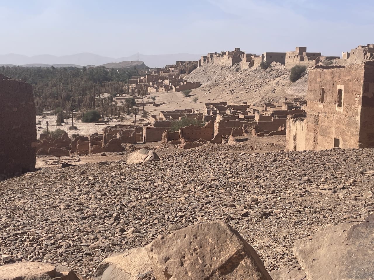 Bevor wir Tata ansteuerten, gönnten wir uns noch einen Abstecher in das ehemalige jüdische Dorf Mellah von Tazarte. Seit dem Exodus vieler Juden nach der Staatsgründung Israels ist es verlassen und dem Zerfall preisgegeben. Keine Touristen weit und breit – nur wir, Steine, Geschichte und eine Atmosphäre, die man kaum in Worte fassen kann. Diese Gegend ist wirklich spannend und erstaunlich unentdeckt.