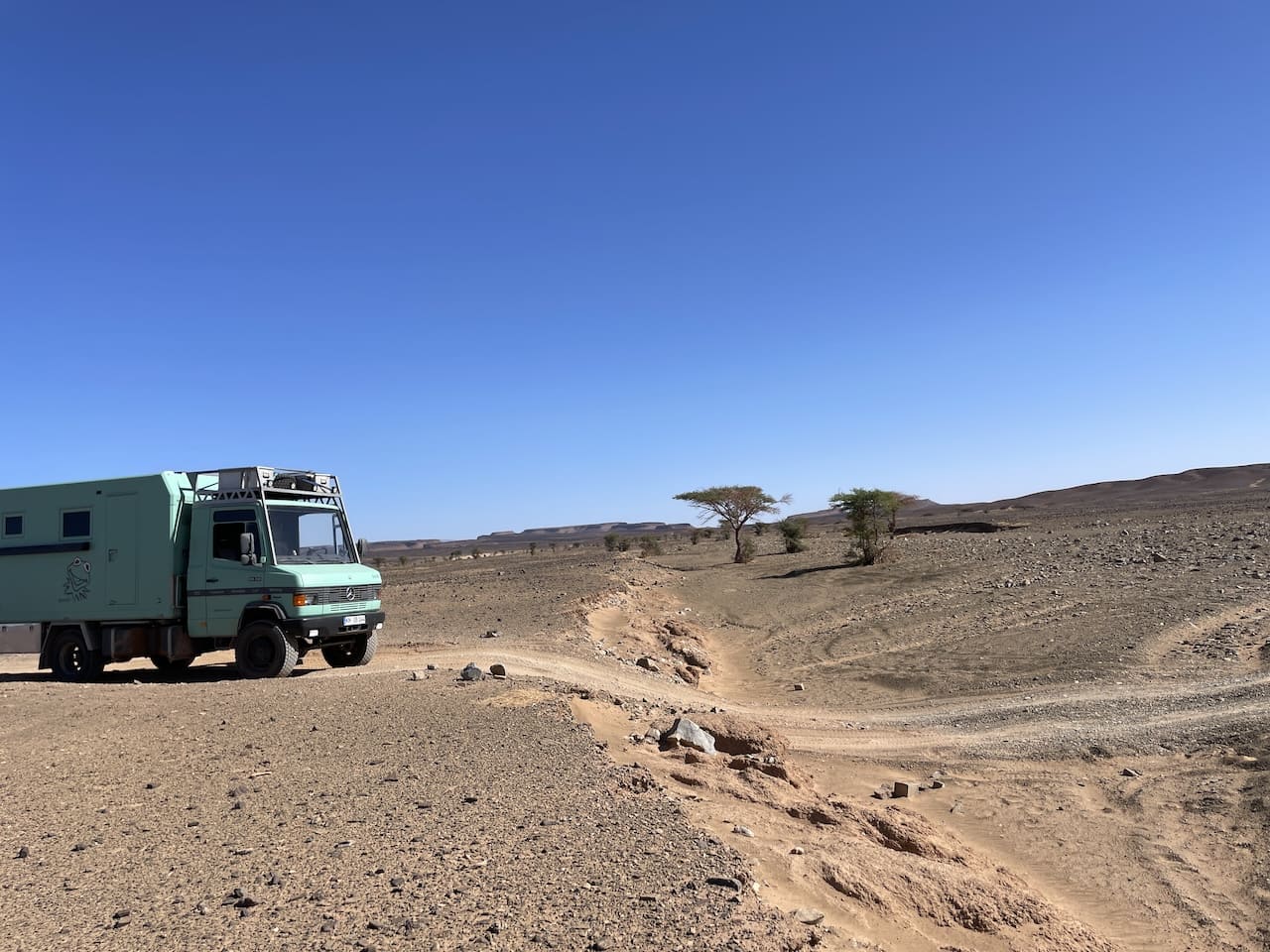 Nun steuern wir Zagora an. Dort soll es einige hervorragende Werkstätten geben – dringend nötig, denn ein vorderer Stoßdämpfer weigert sich nach wie vor, festzuhalten, einer der hinteren ist inzwischen abgerissen, und die Vorderachse klingt zunehmend… sagen wir: kreativ. Zeit für einen Boxenstopp. Mehr dazu dann im nächsten Bericht!