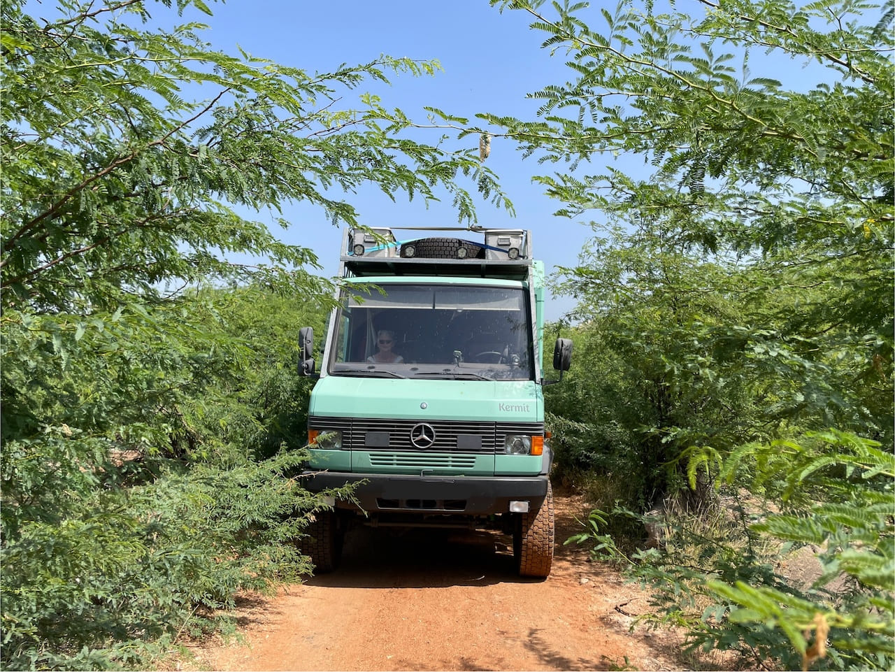 Keine Reise ohne Pannen – die gehören zum Abenteuer dazu. Kaum hatten wir Dakar hinter uns gelassen, hörten wir ein verdächtiges „Rums“ aus dem Wohnkoffer. Diagnose: Kühlschrank-Desaster: Die Tür war komplett rausgebrochen, der Rahmen zerbröselt (Plastik) und Milch, Eier & Co. hatten sich großflächig über unseren Teppich ergossen. Nach einer ausgiebigen Putzaktion stand die nächste Herausforderung an: Reparatur. Denn eines ist klar – eine Afrikareise ohne Kühlschrank ist wie Safari ohne Fernglas. Zum Glück haben wir einen Superkleber und eine Schraube parat gehabt – und siehe da, das gute Stück hält jetzt besser als je zuvor. Uwes Handwerkskunst in freier Wildbahn! Ein paar Tage später dann das nächste Kapitel der Pannenserie: Wasser tropfte aus der Entlüftung unserer Heizung. Also wieder Werkzeugkiste raus, Ursachenforschung, beten… und nach unzähligen Versuchen war plötzlich alles dicht. Warum – keine Ahnung. Wir haben beschlossen, das als göttliches Geschenk zu verbuchen. Dann noch der Magen-Darm-Klassiker – Renate und ich lagen beide flach. Schonkost, Tee und das stille Hoffen auf bessere Zeiten. Reisen ist eben nichts für Zartbesaitete. Auch die Suche nach Stellplätzen kann zur Geduldsprobe werden: mal ist der Weg zu schmal, mal die Einfahrt zu niedrig, mal steht plötzlich eine Baustelle da, wo laut Karte nichts sein sollte. Und manchmal sagt einfach das Bauchgefühl: Hier lieber nicht. So kann es schon mal Stunden dauern, bis wir endlich einen Platz gefunden haben, an dem sich unser Zuhause auf Rädern wirklich wie Zuhause anfühlt. Reisen ist eben etwas anderes als Urlaub machen.
