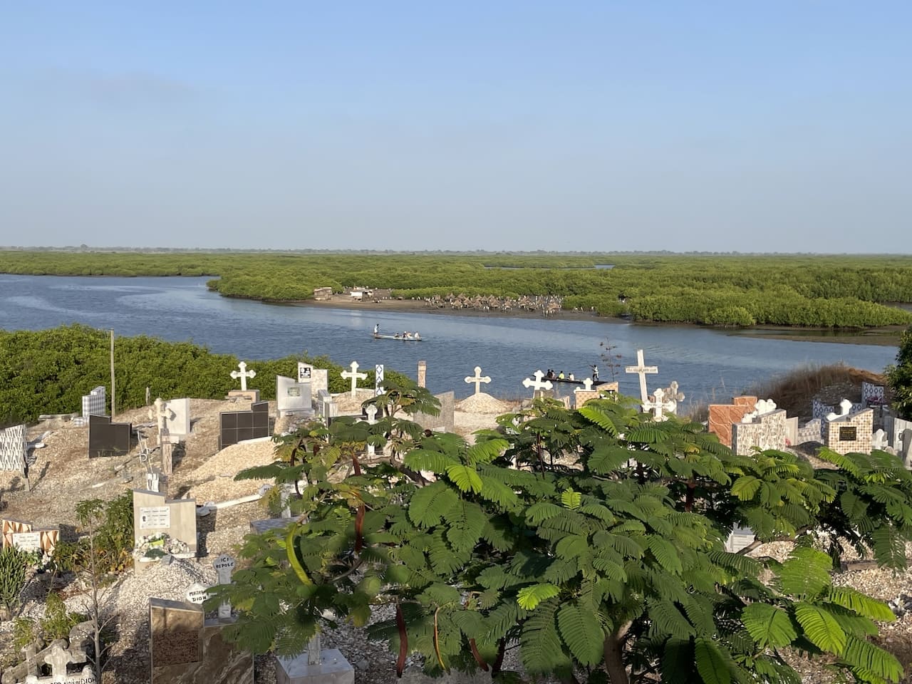 Ein echtes Highlight war unser Besuch auf der Muschelinsel Fadiouth. Eine Insel, die – man glaubt es kaum – komplett aus Muschelschalen besteht. Straßen, Häuser, Friedhöfe, alles schimmert weiß im Sonnenlicht. Nur über eine lange Holzbrücke zu Fuß erreichbar, hat der Ort etwas geradezu Märchenhaftes. Noch beeindruckender ist aber die friedliche Gemeinschaft: Auf dem Festland, in Joal, leben vor allem Muslime, auf der Insel überwiegend Christen – und beide Glaubensrichtungen begegnen sich hier mit offenem Herzen. Sogar auf dem Friedhof werden Christen und Muslime Seite an Seite beerdigt. Ein starkes Symbol für Toleranz. Übernachtet haben wir auf einer katholischen Missionsstation, wo ein paar Nonnen junge Mädchen ausbilden. Im Schatten der großen Bäume dort lässt es sich wunderbar aushalten – zumindest kurzzeitig. Denn unser Dauerthema bleibt: die Hitze!